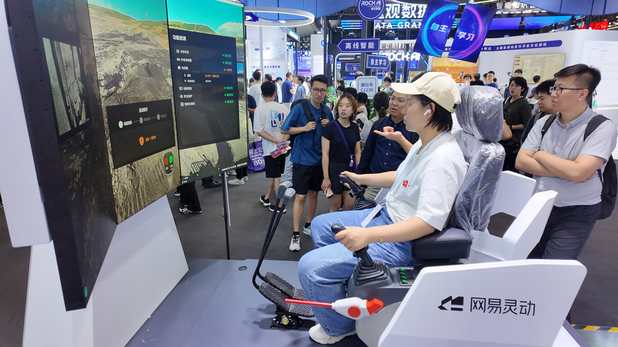 在网易灵动展位,不雅众通过智能座舱及时体验了沉以外内蒙古矿山的无东谈主挖掘机自动装车功能。“没念念到AI也能匡助咱们干危机的责任了!”不雅众们对挖掘机丝滑的无东谈主操作发出咋舌。
