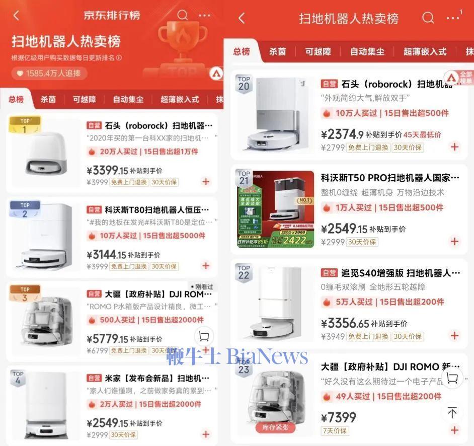 就在前不久,大疆推出了首款扫地机器东说念主居品ROMO系列,尽管大疆未对居品进行大范围宣传,但其热度极高,以京东为例,在扫地机器东说念主热卖榜单(总榜)上,ROMO照旧挤进前三,价钱却比竞品开端50%。