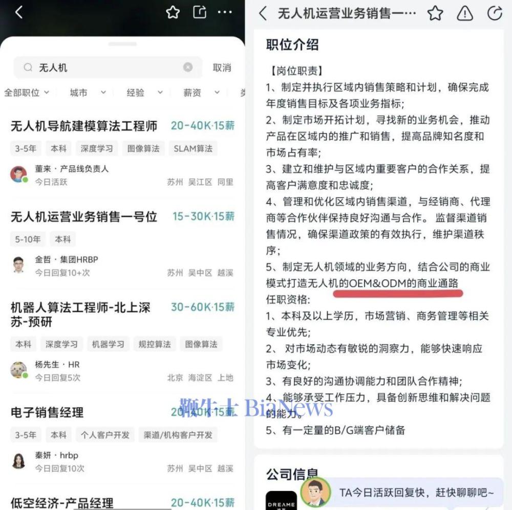 有应聘者炫耀,追觅无东说念主机业务条款有toB和toG职责劝诫以及相应资源,况兼还条款同期熟悉无东说念主机行业的交易花样,大略暂时不走糟践级阛阓,而是看工业级阛阓,这需要有较丰富的行业职责劝诫。
